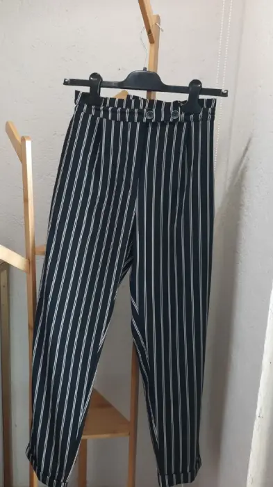Pantalon negro con rayas blancas. Pantalon negro con rayas blancasTalla s (26) marca pull & bear, una puesta