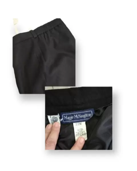 Pantalón negro de vestir térmico. 👇👇Checar medidas!!👇👇👇◾Cintura 106 cm estira hasta 109◾Cadera 148 cm.🧿Tip: midete la cintura y cadera sentada👍◾107 cm largo.◾100% lana.◾Tiro alto◾ Pierna termina en semi tubo◾Con forro◾Bolsillos funcionales enfrente.◾Elástico en los costadosMaggie Mcnaughton
