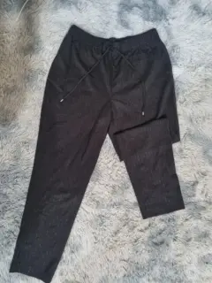 Pantalón jogger en talla L, color negro con detalles de hilos en color plata.Sin detalles.