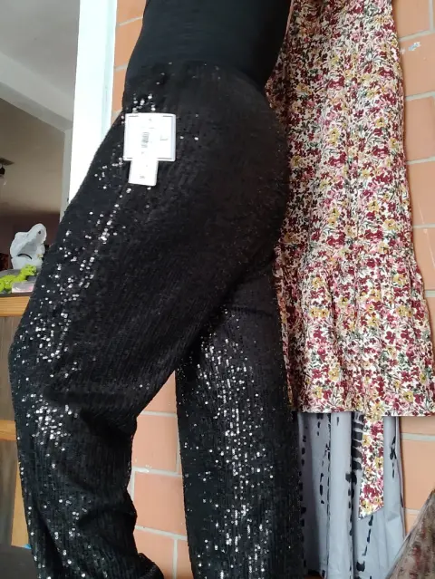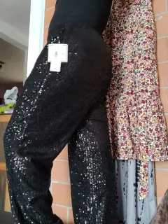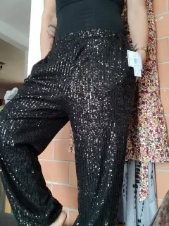 Pantalón Oversize lentejuela. Talla M.americano , completamente Nuevo ,super de Moda ,súper fashion ,con bolsas a los lados ,resorte ajustable,
