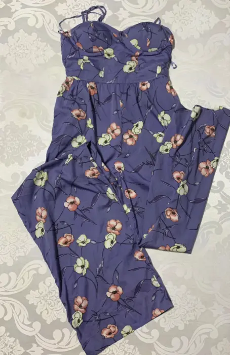 Pantalón Palazzo floreado. Pantalón completo tipo Palazzo, pierna de corte ancho, resorte en la parte de la espalda, 2 bolsillos laterales. No estira.Medidas / busto: 38 cm, cintura: 35 cm, cadera: 53 cm, largo: 1.50 m