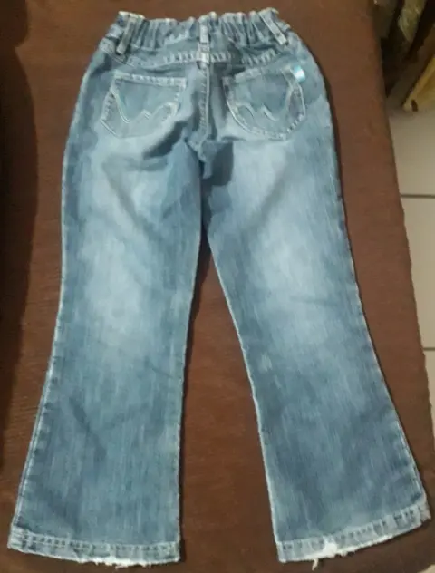 Pantalón para niña. Pantalón de mezclilla para niña Azul claro, con resorte en cintura para reducir o ampliar, 6 y 7 años