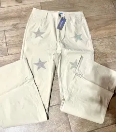 Pantalon pierna ancha strech. Gabardina strech super cool! Tela suave y detalles brillantes de estrella, ropaImportada, medida cintura 40 cms y largo 1.13 cms