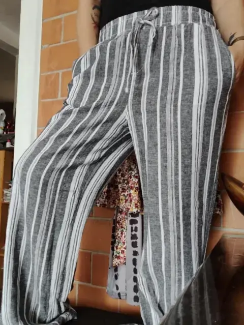 Pantalón pierna de elefante. Prenda Nueva ,súper cómodo ,55 %lino 45 poliéster,Ropa Americana ,bolsas a los lados ,versátil para tenis o sandalias