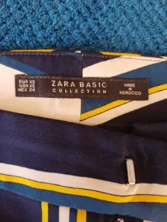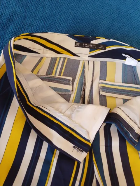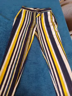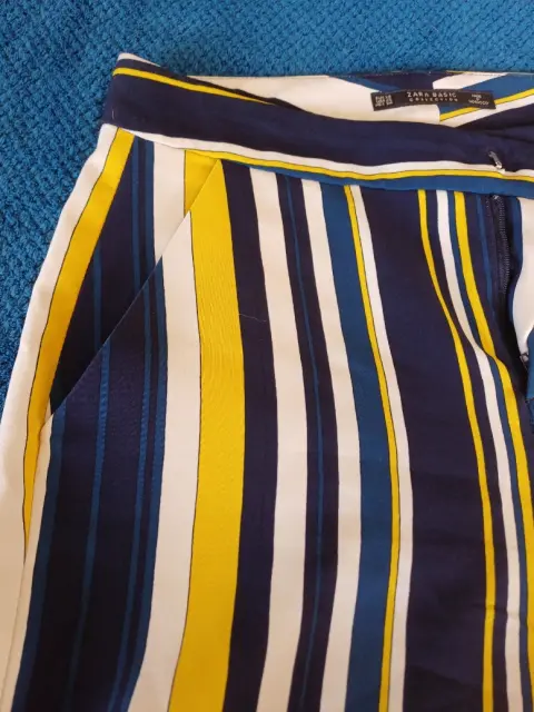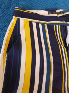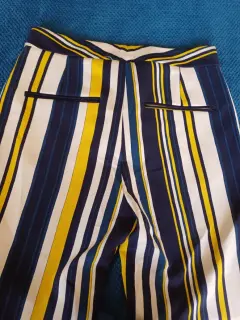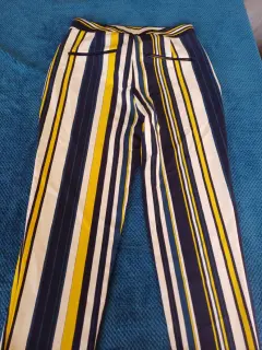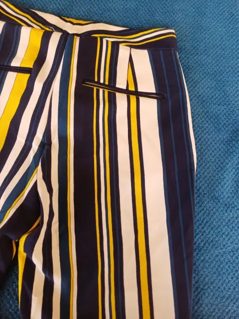 Pantalon recto de rayas vBlancas, azul marino y a.arillo, talla 24 , marca Zara, Dama petite,