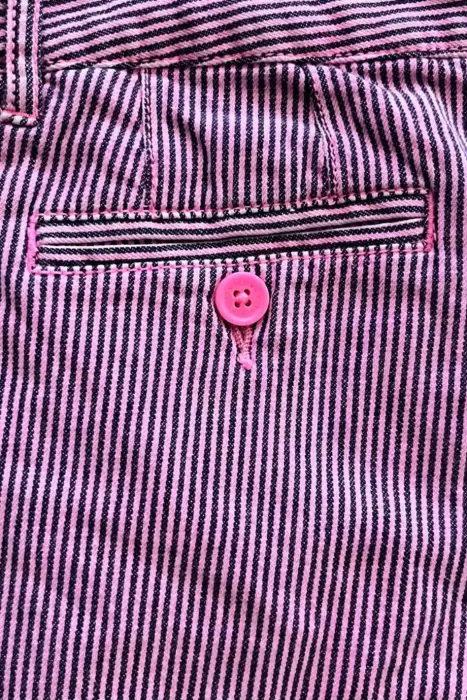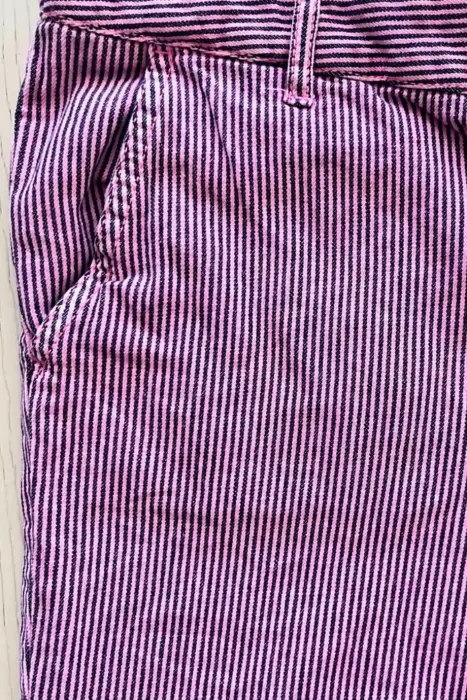 Pantalon rosa de rayas. Pantalon rosa de rayitas azules, corte recto tela es strech, viene con cierre y broche al frente.Medidas:Cintura: 90 cmCadera: 104 cmLargo: 100 cmTiro: 22 cm