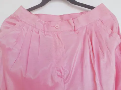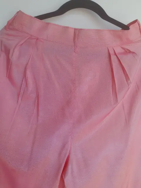 Pantalón rosa metálico Benetton. Pantalón marca Benetton italiano original, de color rosa vibrante. Trae dos bolsas al frente, pinzas y trabilla para cinturón o banda de cualquier color. Cierre y botón. Cintura: 38cm Cadera: 46 cm Tiro: 34 cmMarca talla 46 europeaLargo: 101 cm