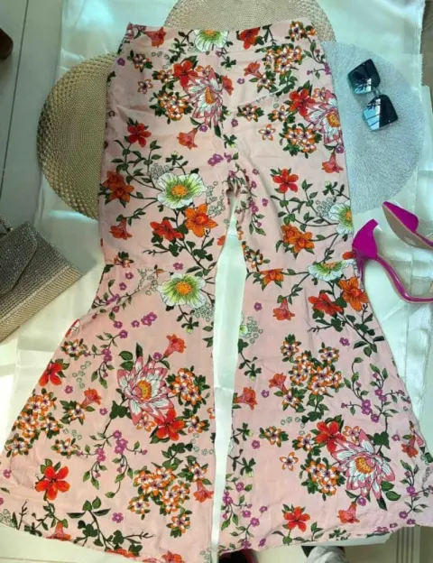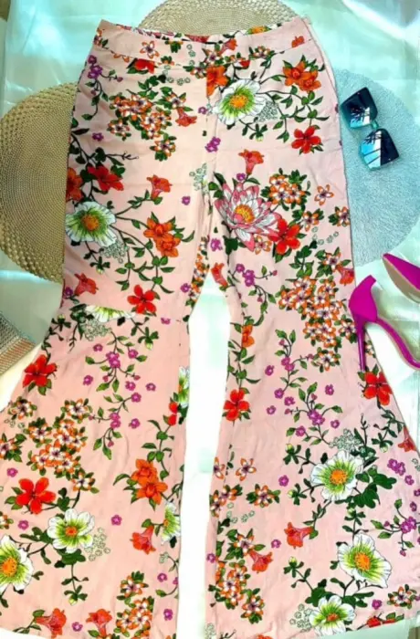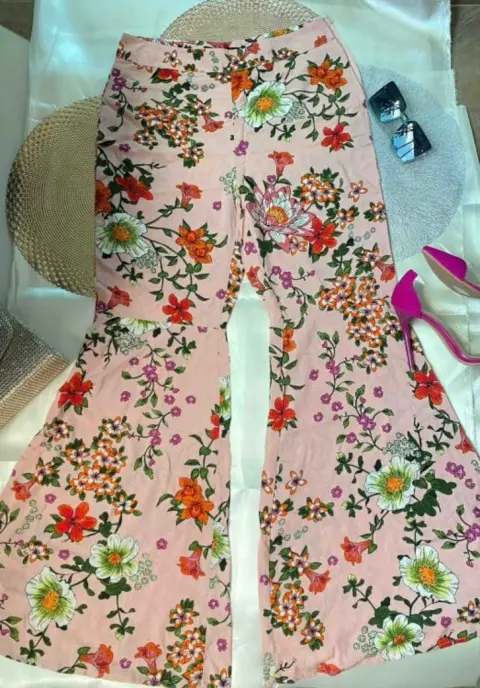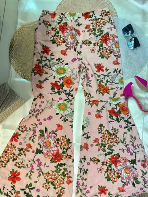 Pantalón Rosa talla L, único detalle en el cierre viene mal, es acampanado y la tela es ligera, no transparenta. Sin detalles. Nuevo a estrenar sin etiqueta. Si te gustan mas prendas puedo armarte un paquete. ENVIOS, LUNES, MIÉRCOLES Y VIERNES. Que no te lo ganen !