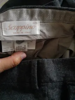 Pantalón Scappino. Pantalón de vestir negro Scappino, la textura es como aterciopelada o con pelitos , mide 86cm. Aprox de cintura , tal vez talla 7, mide 96cm. De largo . Termina con dobladillo hacia afuera .