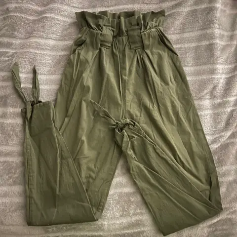 Pantalon Skinny a la cintura, color verde militar, talla S, largo 3/4’s. No se estira, no stretch, tiene cinturón del mismo color. Puesto luce muy bonita figura.