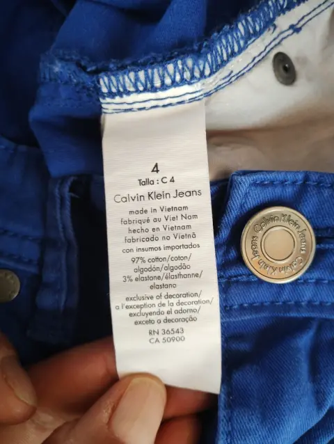 Pantalón skinny crop casual azul 💙. Pantalón azul marca Calvin Klein talla 4 queda a sCorte skinny cropEl corte crop se refiere a que es corto tipo capriTiro medioCasual 💙 Usado sin detalle, mide 39 CM de cintura, 22 CM de tiro, 47 CM cadera, 85 CM largo