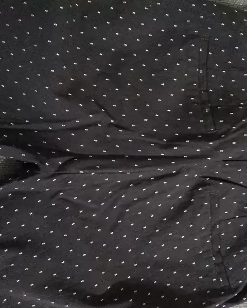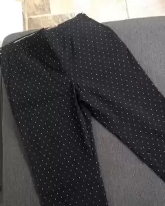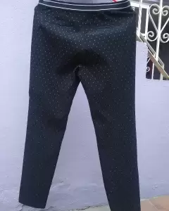 Bonito pantalón stresh, color negro con puntos blancos, corte recto, bolsas a los costados , en la parte de la cintura trae resorte, ideal para ti que eres totalmente fashon