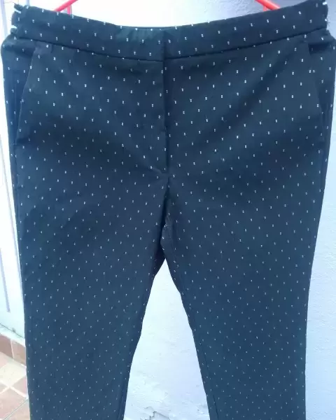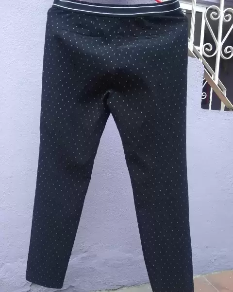 Pantalón stretch. Bonito pantalón stresh, color negro con puntos blancos, corte recto, bolsas a los costados , en la parte de la cintura trae resorte, ideal para ti que eres totalmente fashon
