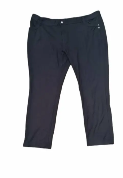 PANTALON STRECH,CORTE RECTO, COLOR NEGRO, MARCA COVINGTON,TALLA 20 W (2x),68 % RAYON,29%NYLON,3% SPANDEX,MIDE 114 CM DE CINTURA, 120 CM DE CADERA, 104 CM DE LARGO,BOTONES TIPO BRILLANTES,BOLSILLOS FUNCIONALES ATRAS Y ADELANTE