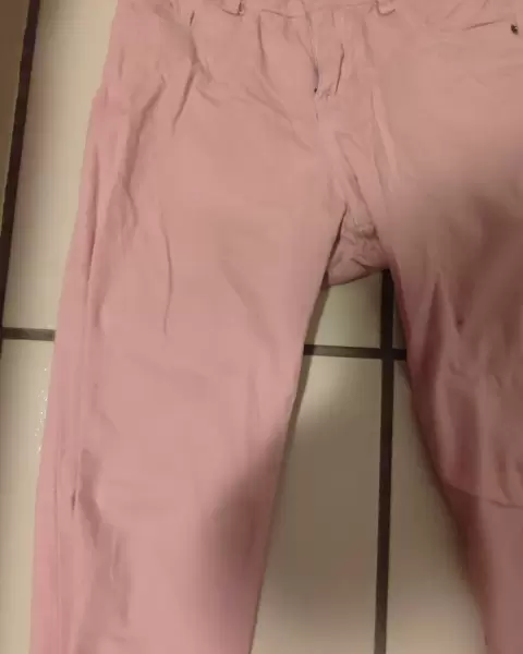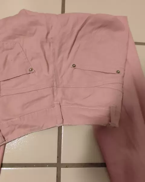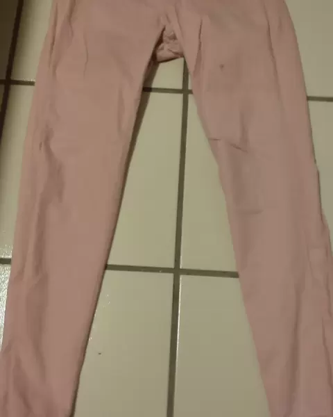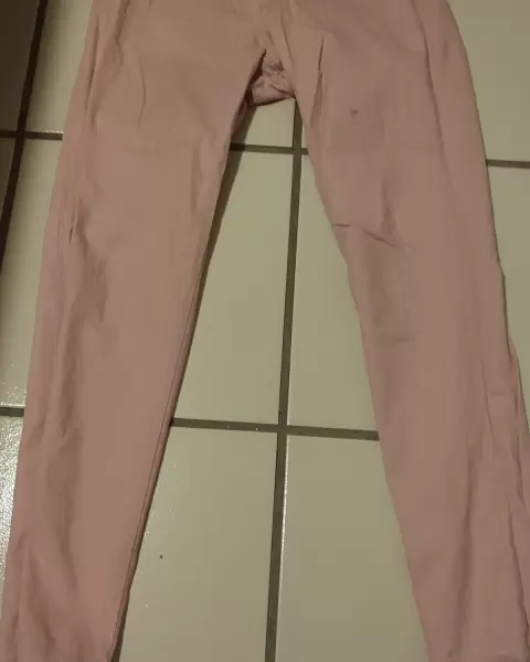 Pantalon talla 5, marca trevo, color rosado, o palo de rosa, entubado, con bolsas delanteras simuladas y bolsas traseras de verdad. Tela suave