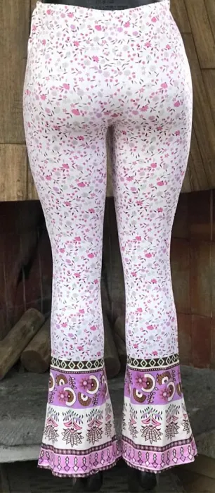 Padrísimos pantalones acampanados como de los 60 muy de moda otra vez son de licra uní talla quedan desde las cero a las siete porque tienen expande ex formas muy padre excelente calidad y precios son de importación
