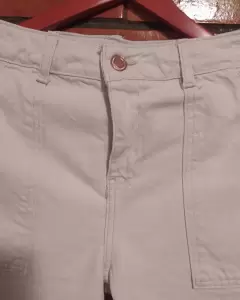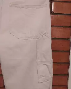Pantalón beige, tiro alto, pierna ancha, tipo cargo, sin ningún detalle.