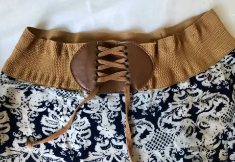 Pantalon ligero tipo palazzo, largo , azul/ blanco con resorte en cintura beige
