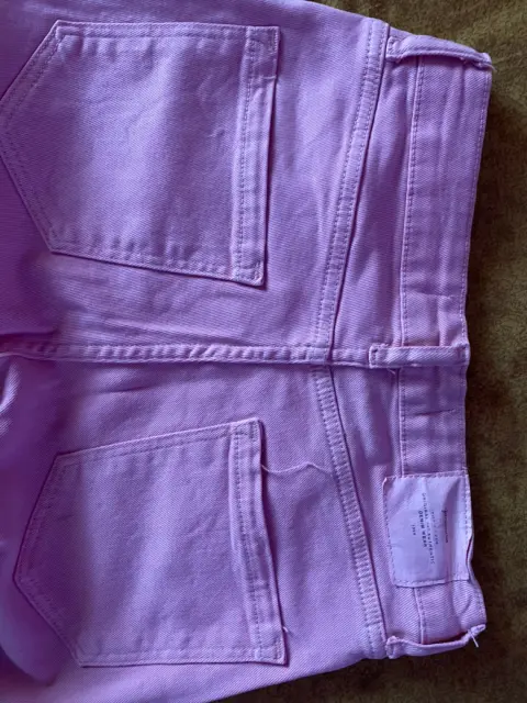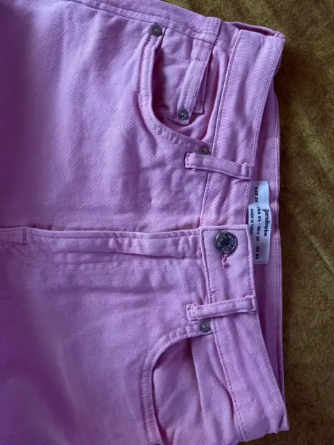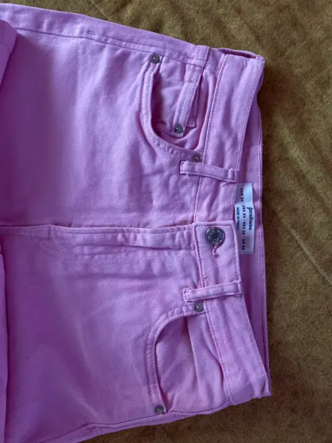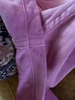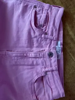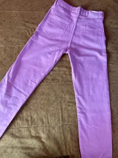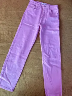 Pantalón de uso color rosa, no tiene. Ningún detalle, la mezclilla no está deslavada. Se encuentra en buenas condiciones.