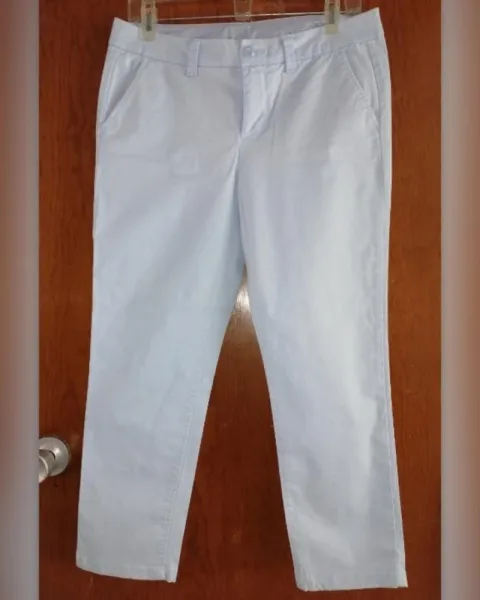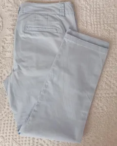 Pantalón tobillero azul pastel.. Es un pantalón que estiliza muy bonito en tu cuerpo y puedes utilizarlo de forma casual o formal. ☺️Talla: 6. MEDIDAS DE LA PRENDA :Cintura: 42 cm. Cadera: 50 cm. Largo tiro (frente): 23 cm. Largo tiro (trasero): 31 cm. Largo total: 88 cm. Largo pierna interior: 63 cm. Ancho pata (medido en el tobillo): 17 cm.