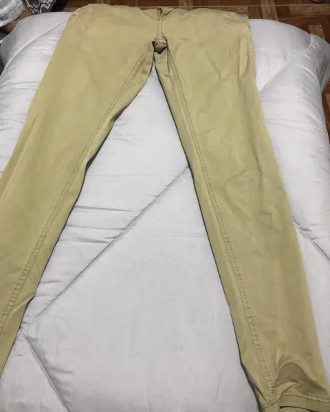 Pantalón a la cadera, tipo gabardina, entubado, talla 24MEX