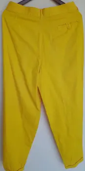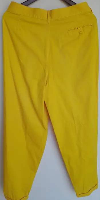 De colección, este increíble pantalón color amarillo huevo, con bolsas frontales, una en la parte trasera, pinzas, trabillas para cinturón. En perfecto estado. No te lo pierdas. Serás la atracción de muchas miradas.Cintura: 40 cmCadera: 48 cm. Largo: 106 cm