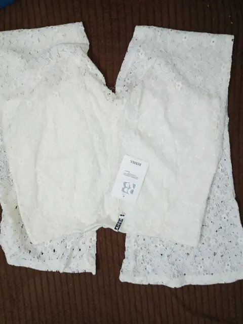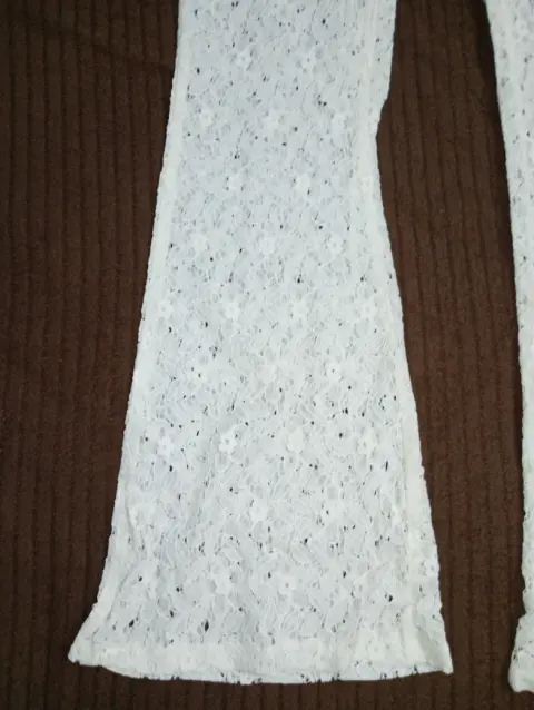 Precioso pantalón acampanados color blanco/ivory de encaje, muy hermoso, cuenta con fondo tipo short, completamente nuevo, marcado como talla 7. Imperdible para la playa 🏖️