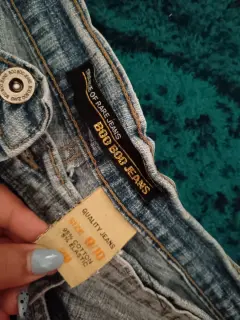 Pantalones cortos bordados, de mezclilla Talla 7, queda justo arriba de la rodilla.