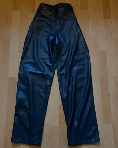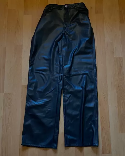 Pantalones de “cuero” Bershka talla mediana son tipo baggy , ajustados a la cintura y son high waisted