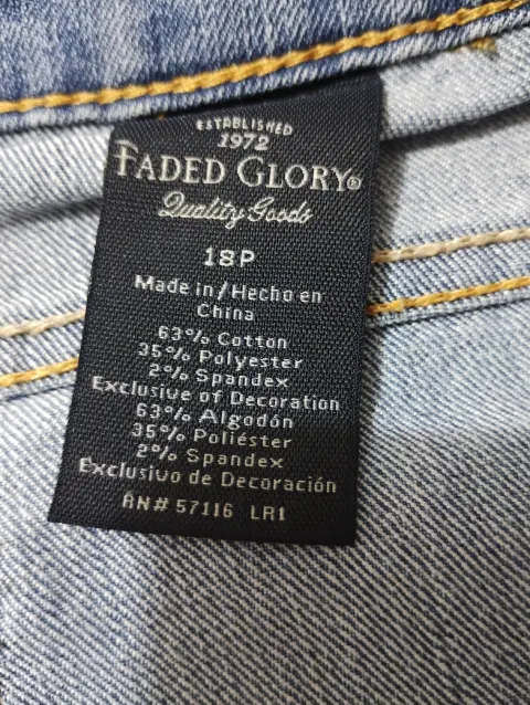 Pantalones de Mezclilla Faded Glory Talla 18. Pantalones de Mezclilla Americanos Marca Faded Glory Talla 18 Composición de Algodón, Poliéster y Spandex Mide 92 cms de Cintura y 118 cms de Cadera*Se puede hacer un paquete con varias prendas para pagar un solo envío