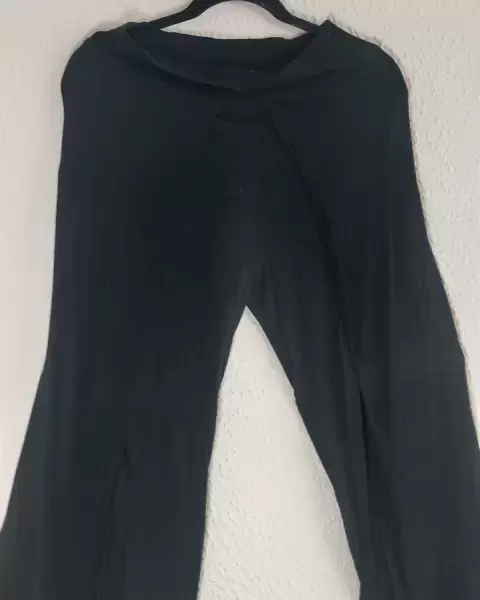 Pantalones negros de algodon piernas abiertad. Pantalones de algodón con tela cruzada al frenteAl caminar secabrecla tela y deja ver la piernaCon elasticoben la cintura para ajustarlosMuy bonitos, comodos y elegantesIdeal para toda ocasión especialmente playa y clima cálido