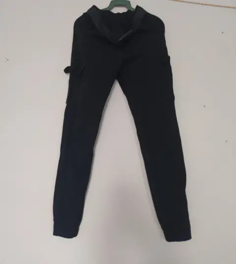 Pantalones tipo cargo negro. Para dama, pantalón tipo cargo talla chica, color negro, con cinturón en cintura