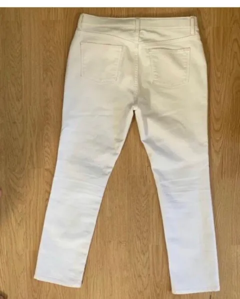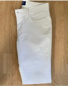 Pantalones tipo pescador blancos. Talla 14 regular, llega a las caderas, tiene ajuste en la cintura, no tiene ningún detalle, es tipo pescador, la tela es de calidad no se transparenta la ropa interiorMedidas: largo 83 cm muslos, 23 cm cintura, 35.5 caderas 44 cm