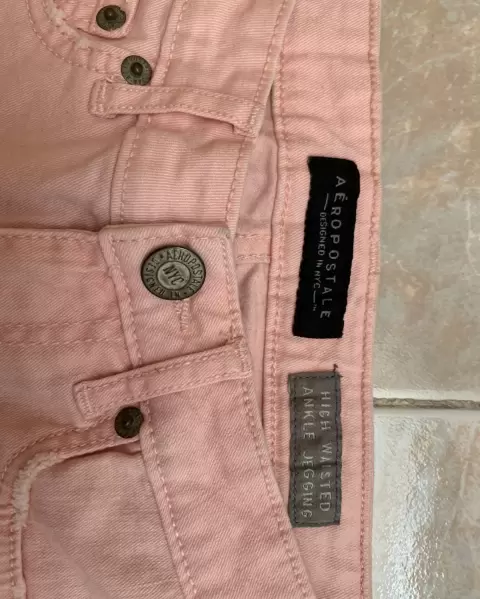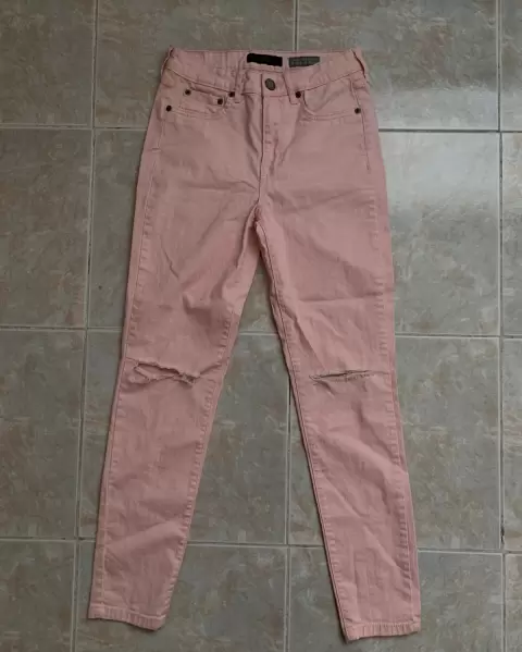 Patalon rosa. Pantalón rosa high waisted entubado Con roturas en las rodillas Aeropostale