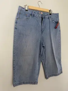 Pescador de mezclilla, tiene algo de strech (tiro alto) talla 16Medidas aproximadas de lado a lado:Cintura 56cmCadera 57 cmLargo 69 cm