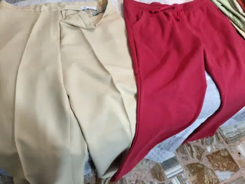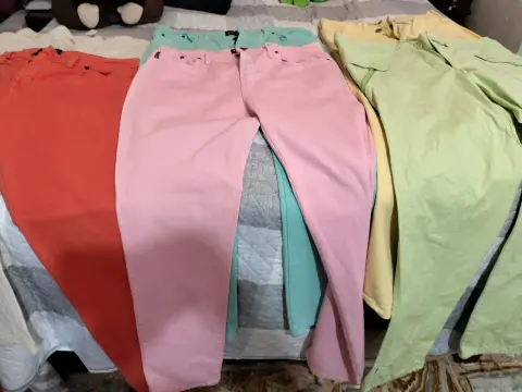 Tengo distintas prendas a escoger. 1 par de jeans de colores claros de moda de uso, buen precio (a escoger color naranja, verde claro, rosa) Talla 34-361 falda recta verde claro, talla 34.1 pantalón Oscar de la renta Amarillo paja talla 341 pantalón rojo de deportes (pants) talla 34