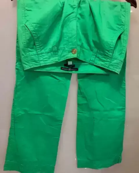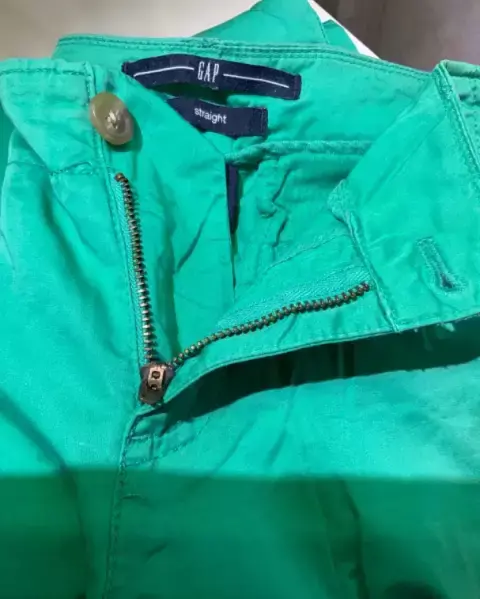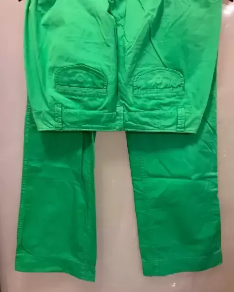 Verde pantalón. Bonito y fresco pantalón.Pierna ancha, bolsas laterales y en la parte de las pompis.Cierre en perfectas condiciones.Esta ligero y justo para ti!