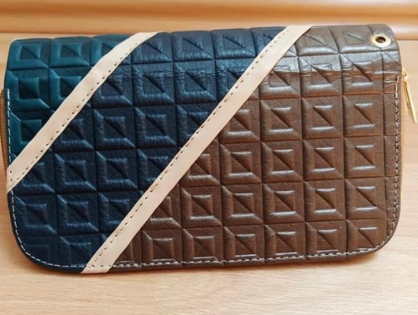 Contiene una bolsa amplia cincelada de gran tamaño con correa para el hombro y su cartera del mismo diseño a doble cierre y con correa para muñeca en un solo paquete