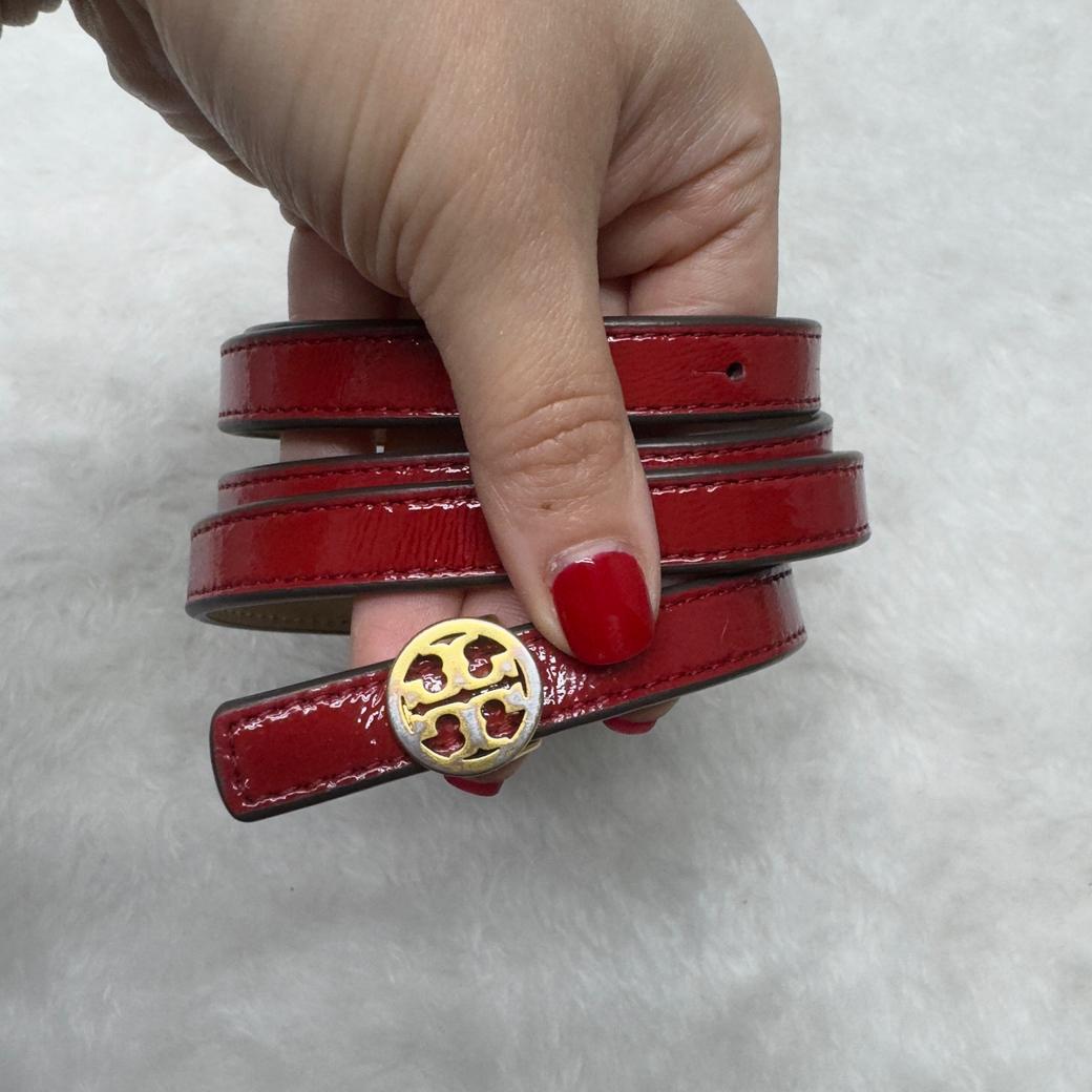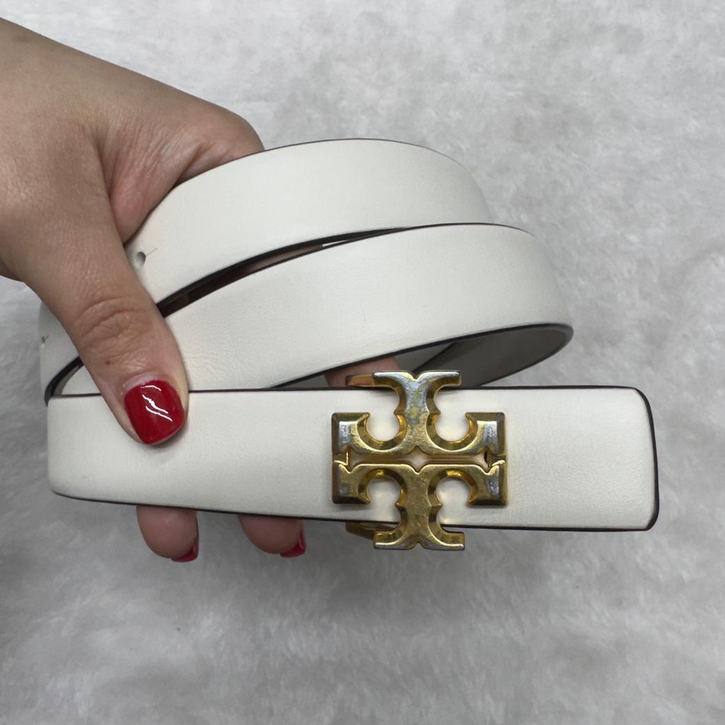 Cintos Tory Burch. Pack de cintos Tory Burch talla L, uno en color blanco y el otro en color rojo, ambos tienen herraje dorado y algunos detalles de uso (principalmente en la hebilla).