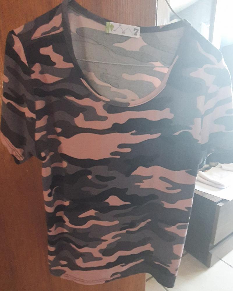 Combo de Blusas. Una hermosa blusa con transparencia, además por mitad de precio blusa de tirantes con encaje y blusa TOTALMENTE NUEVA con estampado camuflaje de colores Rosa y gris