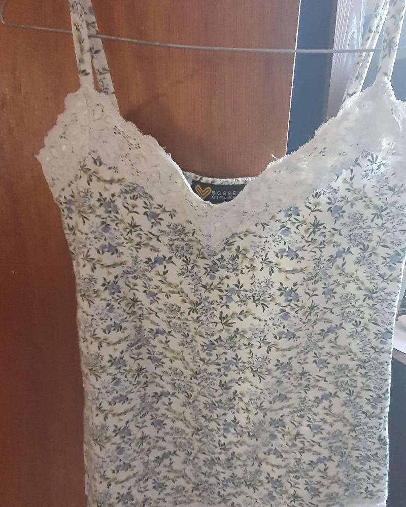 Una hermosa blusa con transparencia, además por mitad de precio blusa de tirantes con encaje y blusa TOTALMENTE NUEVA con estampado camuflaje de colores Rosa y gris