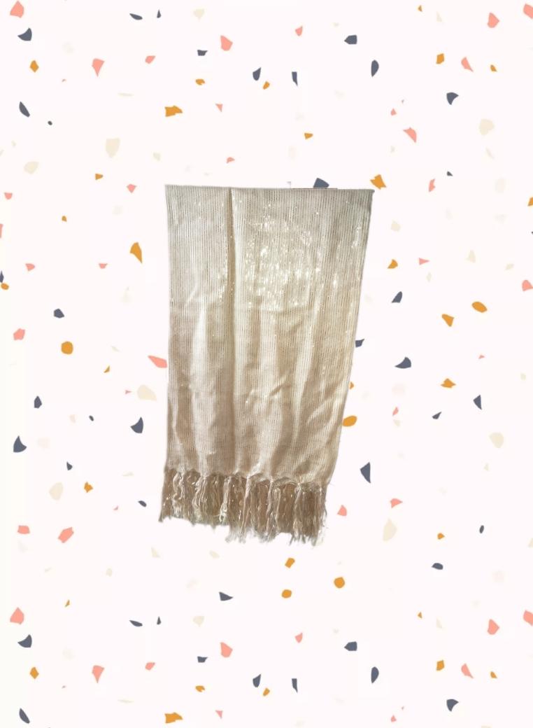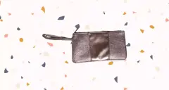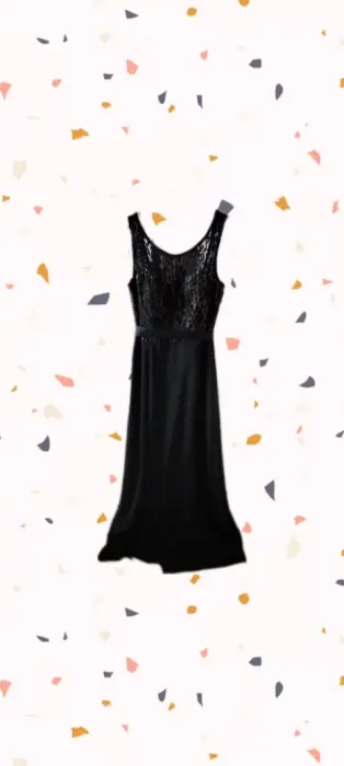 Fiesta de noche. Vestido negro largo con abierta en la pierna, collar y aretes, pashmina o chalina oro rosado o rosa metálico y bolso tipo clutch color rosa metálico