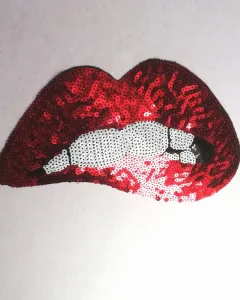 Parche labios rojos. Parche en forma de boca hecho de lentejuela, mide aproximadamente 27 x 17 cm. Tiene pegamento en la parte de atrás o bien lo puedes coser.