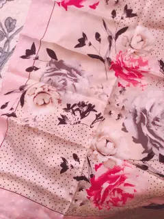 🌸BELLA MASCADA SEDA ROSAS XL🌸. Linda y bella mascada de seda color rosa, bolitas y rosas, rectangular, ancha y larga, finísima, sin detalles ni roturas. Por favor checar bien las fotos para evitar devolución o calificación no concordante a mi descripción. Envíos los lunes ❤️