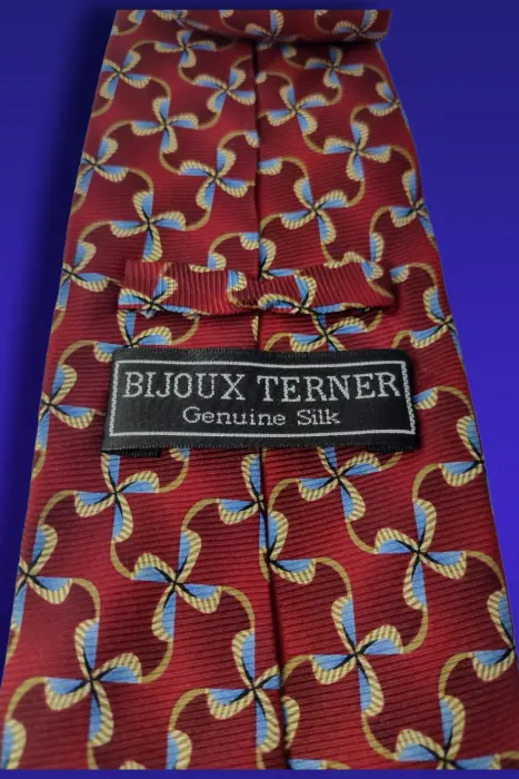 Bijoux Terner Corbata Clásica Seda Roja. Corbata Clásica Bijoux Ternera Roja SedaHermosa corbata Clásica Roja con motivos florales y patrón de hélices azules, elegante.Hecha a mano en sedaEstilo: ClásicoMaterial: SedaOrigen: ChinaMedidas: Ancho 9.5 cm Largo 1.66 mtAclaro tus dudas