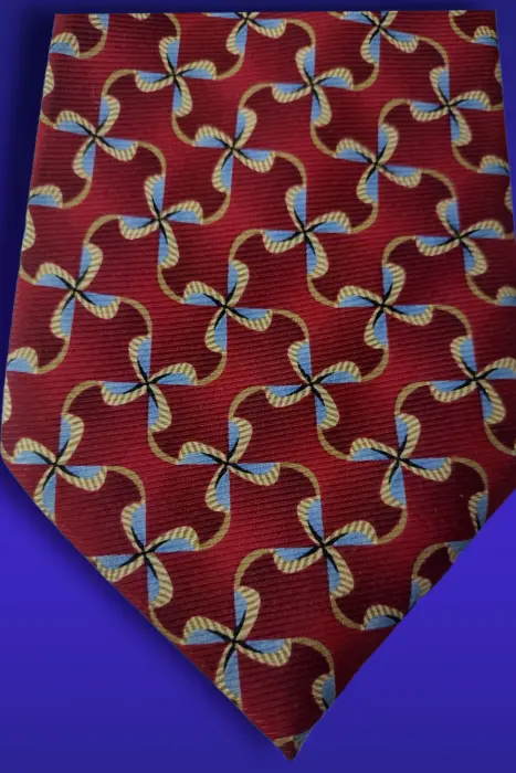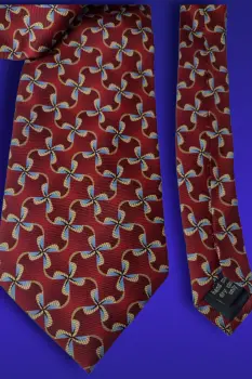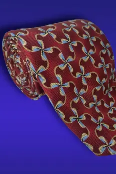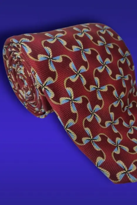 Corbata Clásica Bijoux Ternera Roja SedaHermosa corbata Clásica Roja con motivos florales y patrón de hélices azules, elegante.Hecha a mano en sedaEstilo: ClásicoMaterial: SedaOrigen: ChinaMedidas: Ancho 9.5 cm Largo 1.66 mtAclaro tus dudas