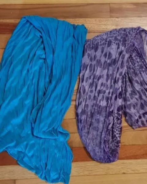 HERMOSAS Pashminas**💜💙. Lindas pashminas que le darán un toque a tus outfits, 1x150, 2x200, sin detalles buena calidad, turquesa y morada animal PRINT, dejo sugerencia de uso. Envío rápido.