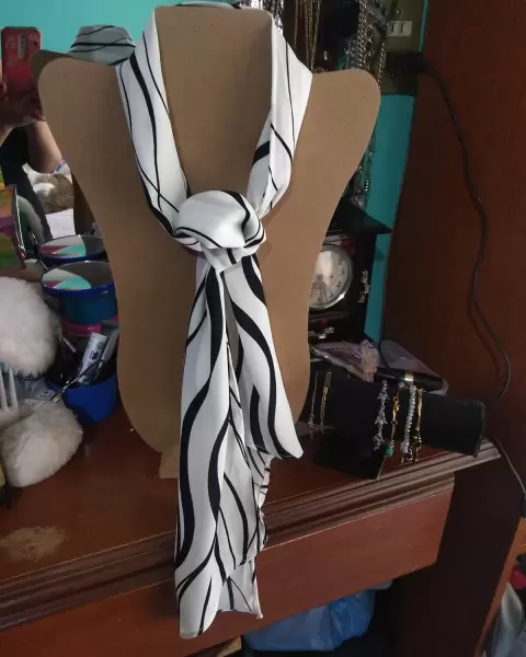 Pañuelo Largo Multifuncional. Lindo pañuelo largo multifuncional, elegante y fresco, elaborado en poliéster suave, de 19X129cm, en blanco y negro!!Combina perfecto con todos los outfits, usalo como corbata al cuello, como cinturón, banda para el cabello o como adorno en el bolso. Se ve padrísimo!!💝Si te gusta algo más de mi clóset podemos armar un paquete a un excelente precio 🐱!!