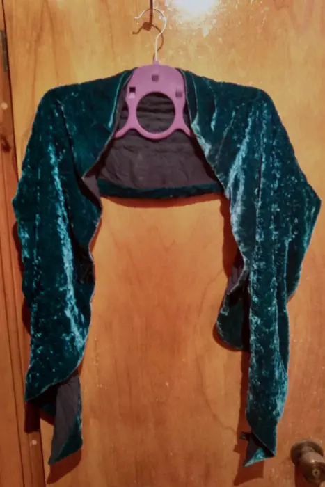 Pashmina de terciopelo con forro por el revés. Forma de trapecio. De punta a punta mide 150 cm.