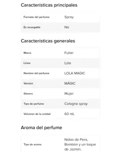 🟡Colonia Colorfun LOLA MAGIC🟠Formato: Spray🟣Marca: Fuller🔵Género: Dama 🟢Unidad:60ml⚪Aroma: Notas de Pera, bombón y un toque de Jazmín.